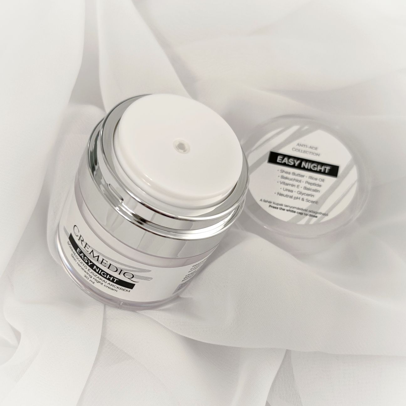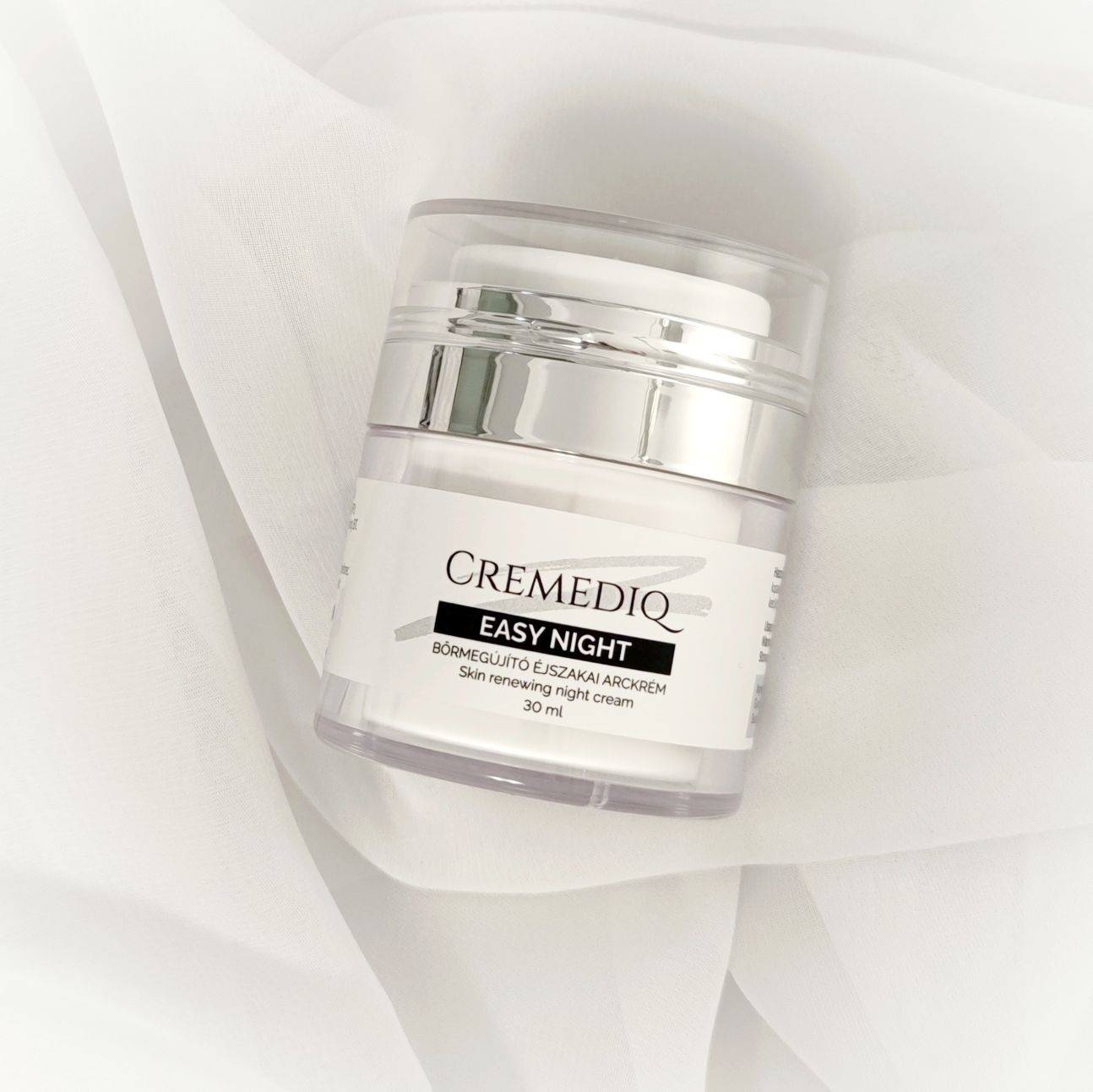 - Azoknak, akik nagyon elfoglaltak, folyton rohannak: Tudjuk, hogy a mindennapokban nehéz magunkra időt szánni. Nincs idő órákig a tükör előtt állni. Ahogy minden CREMEDIQ kozmetikum, az EASY NIGHT éjszakai bőrmegújító arckrém is azzal a céllal született, hogy hatékony és gyors megoldást nyújtson a mindennapi otthoni bőrápoláshoz. Az EASY NIGHT önmagában is gyorsan, könnyen segít a bőrnek, hogy az visszanyerje fiatalos megjelenését.
